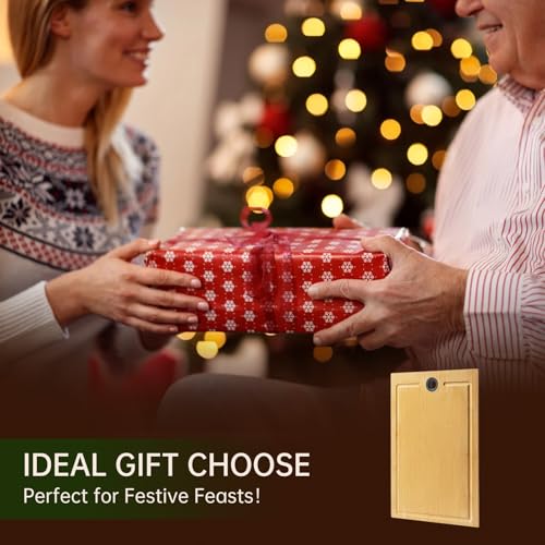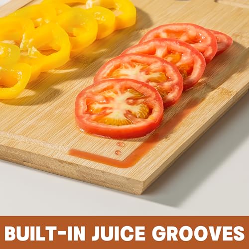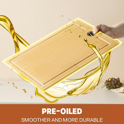 thetchry - لوح تقطيع كبير من الخيزران للمطبخ من ثتشري، الواح تقطيع خشبية مع اخدود عصير ومقبض مائل، لوح تقطيع غير قابل للانزلاق للحوم والجبن للتقديم، مسبق الزيت، 15 انش × 10 انش × 0.6 انش