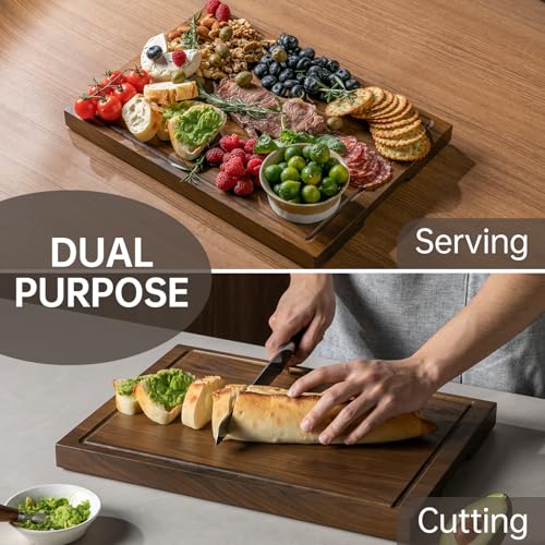 thetchry - لوح تقطيع خشبي كبير للمطبخ من ثتشري، الواح تقطيع خشبية سميكة مع اخدود للعصير ومقابض واقدام غير قابلة للانزلاق للحوم والجبن للتقديم، مسبق الزيت، 16.5 انش × 11.8 انش × 1.2 انش