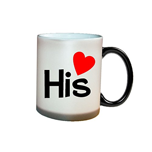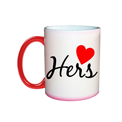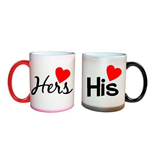 Generic - طقم مج قهوة سحرية من ذا يايا كافيه مكون قطعتين لذكرى سنوية الزوج والزوجة لون اسود واحمر سيراميك 2
