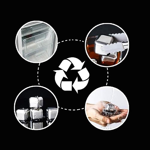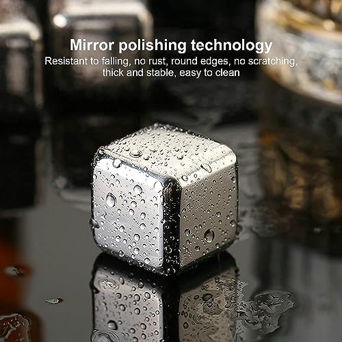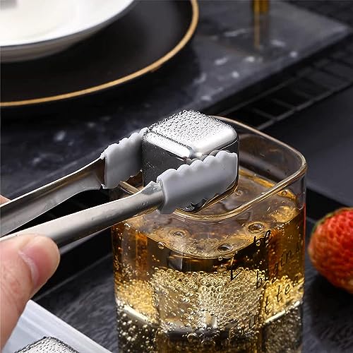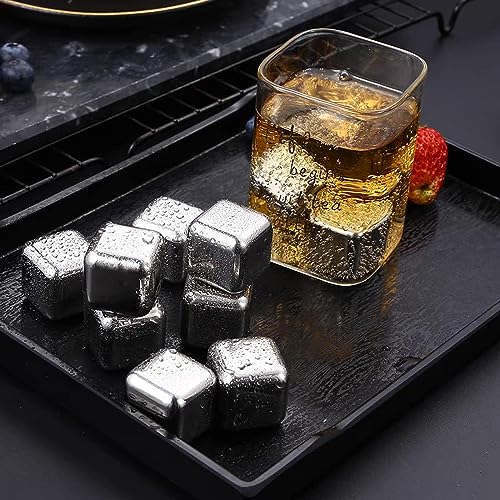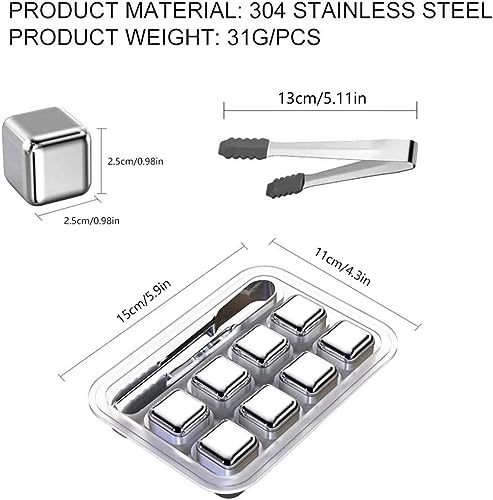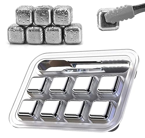 Thgtao - مكعبات ثلج من الستانلس ستيل من ثجتاو، عبوة من 8 قطع من حجر ويسكي قابل لاعادة الاستخدام، مكعبات ثلج من الستانلس ستيل + مشابك، مع تقنية تبريد عالية، مناسبة للويسكي او المشروبات او عصير الليمون