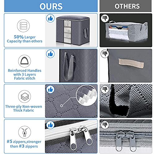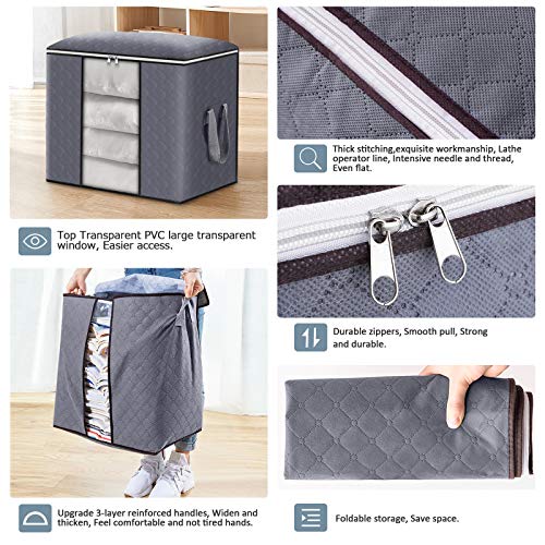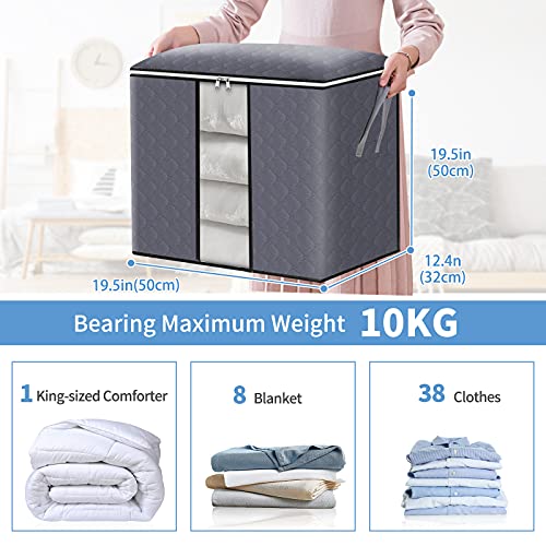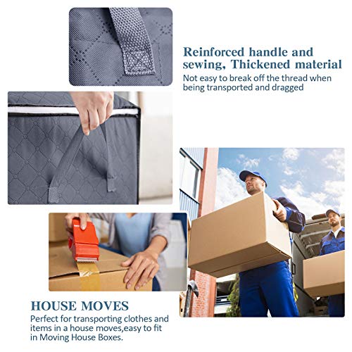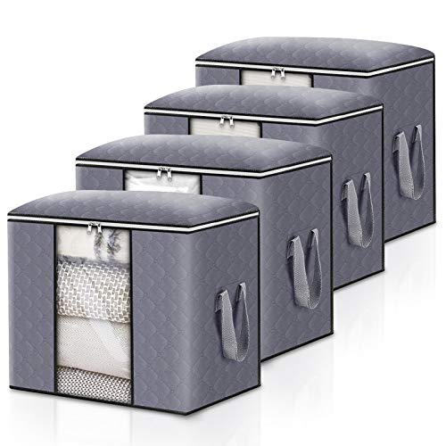 Spaceshoop - شنطة تخزين كبيرة قابلة للطي بنسيج سميك مضاد للعفن مع سوستة ومقابض معززة (رمادي فاتح) - عبوة من 4 قطع، ستانلس ستيل