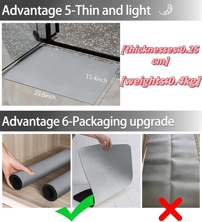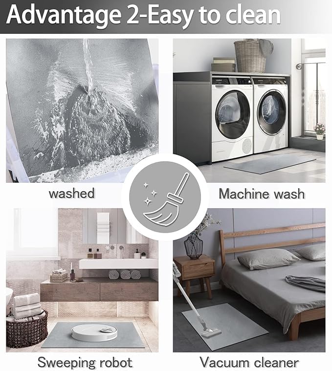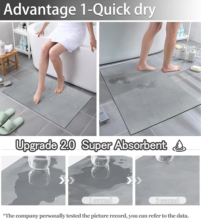 - 🔔【دواسة حمام فائقة الامتصاص】تعتمد دواسة الحمام الخاصة بنا على أحدث تقنيات امتصاص الماء، ما يصل إلى 90% من المسام الدقيقة التي لا حصر لها على السطح الذي يمتص الماء في ثوانٍ، قل وداعًا لقطرات الماء، وستختفي العلامة المائية خلال بضع دقائق.