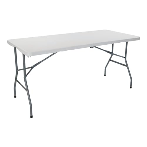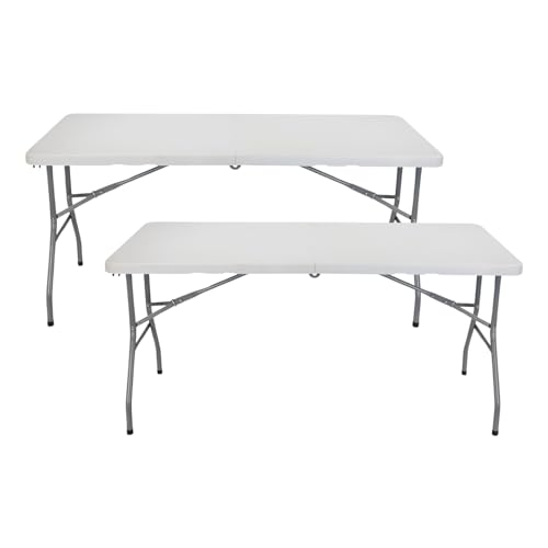 THINIA HOME - طاولة طعام مستطيلة قابلة للطي من ثينيا هوم 150 سم عبوة قطعتين الراتنج - الستيل للاستخدام الداخلي والخارجي والحديقة والشرفة مقاومة للرطوبة والاشعة فوق البنفسجية محمولة 4 قطع ابعاد × 70 أبيض