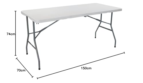 - قوية ومتينة: هذه الطاولات القابلة للطي مصنوعة من الستيل والراتنج الأبيض. مثالية لـ 2-4 مقاعد. أبعادها الإجمالية 150 × 70 × 74 سم (الطول × العرض × الارتفاع)