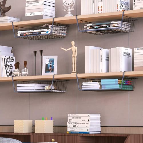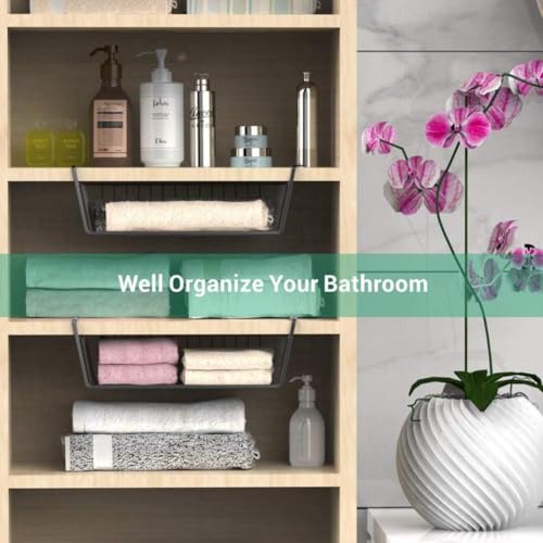 Generic - سلة تحزين معدن للوضع تحت الارفف وتوفير المساحة من ثينكينج لتنظيم المطبخ والمكتب والدواليب والحمام والمكتبة، قطعتين، اسود