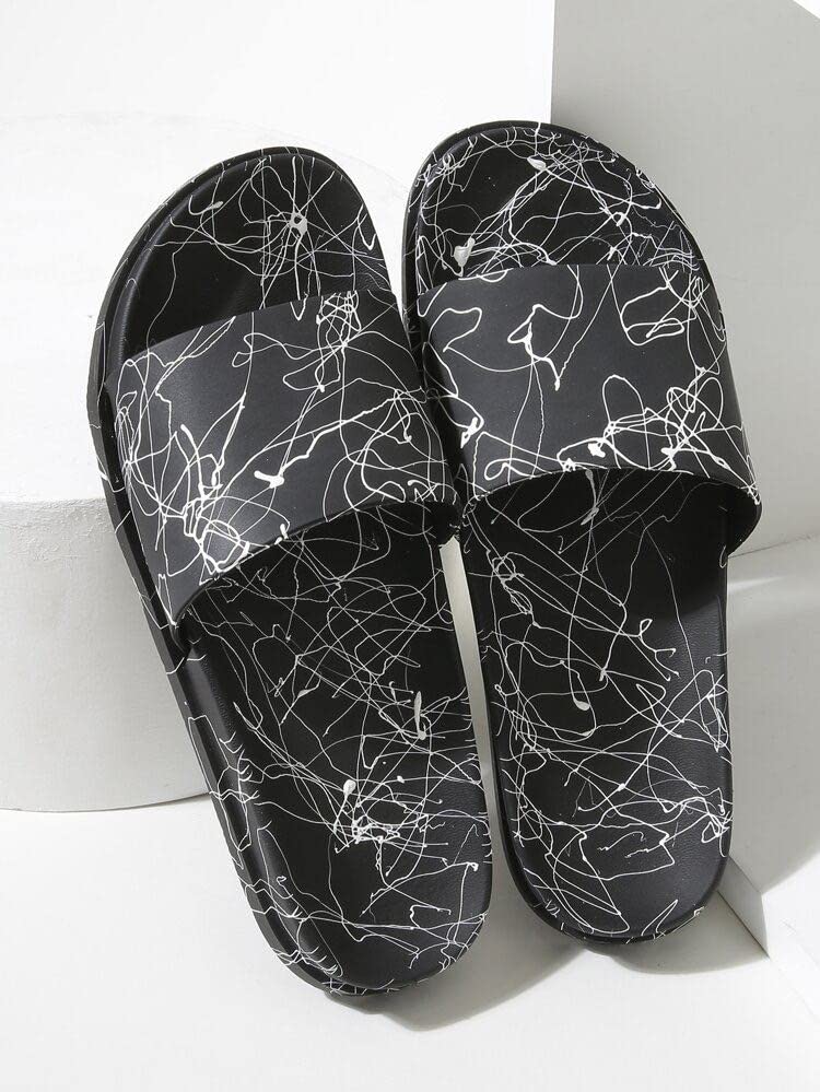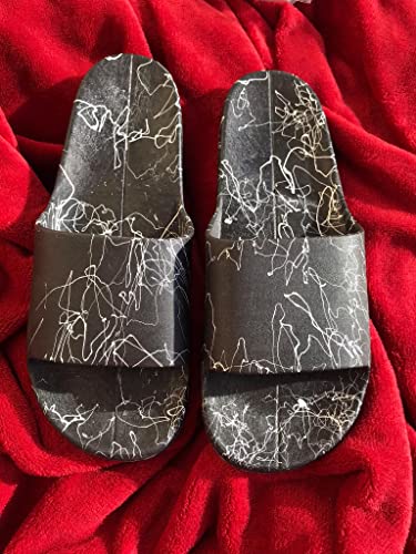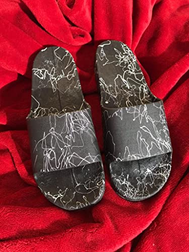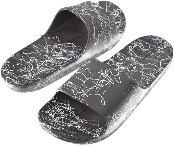 Generic - شبشب طبى رجالي خروج وبيت - جلد مرن مريح - طبى - شبشب مريح يصلح للجنسين - شبشب اسود مع خطوط بيضاء شكل عنكبوت Men Thong Slippers Medical Leather Comfortable Elastic Black with White Stripes