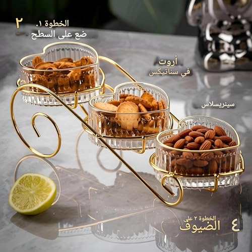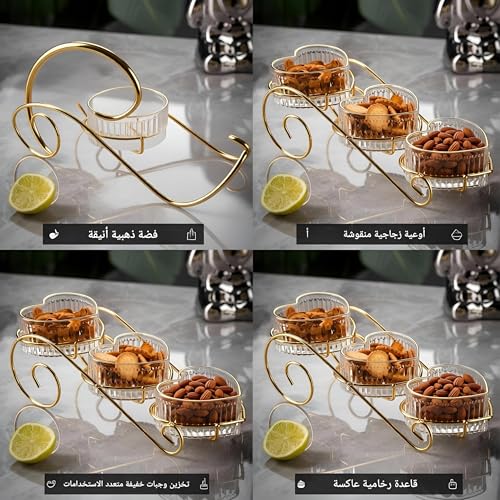 Generic - عرض الحلوى بثلاث شبكات - طبقات زجاجية شفافة مع حواف ذهبية مثالية لتقديم الحلوى الانيقة في حفلات الزفاف او الحفلات