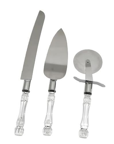 Generic - مجموعة كيك من ثلاث قطع - حل تقديم انيق للكعك والحلويات، تجمع هذه المجموعة بين شفرات حادة من الستانلس ستيل ومقابض اكريليك شفافة لعرض مذهل للطاولة.