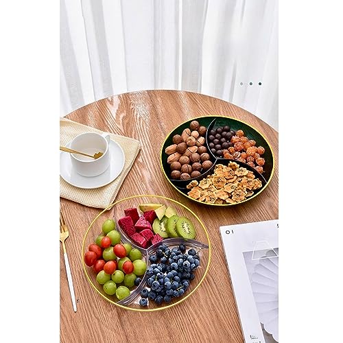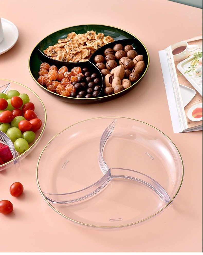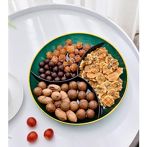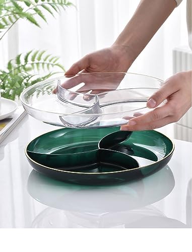 Generic - طبق فطور اكريليك مكون من ثلاثة اقسام لسلطة الفاكهة منفصل للحلوى والوجبات الخفيفة مستدير أخضر