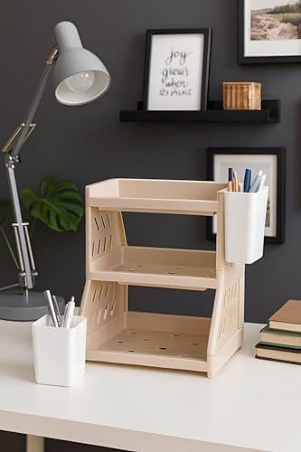 Generic - منظم من ثلاث مستويات متين حل تخزين ذكي ومتعدد الاستخدامات للألعاب والكتب والأغراض الأساسية، بيج