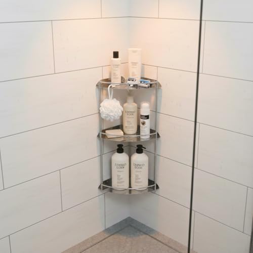 - تصميم ثلاثي المستويات يوفر مساحة واسعة لجميع مستلزمات الاستحمام الخاصة بك.