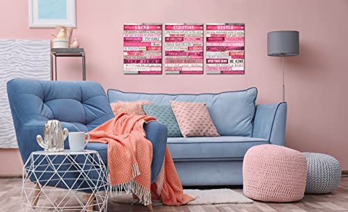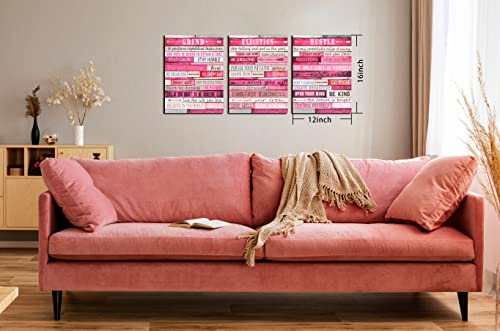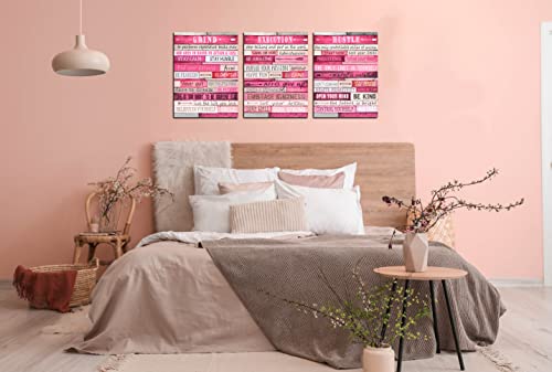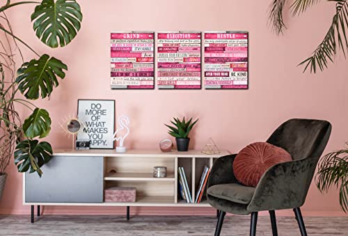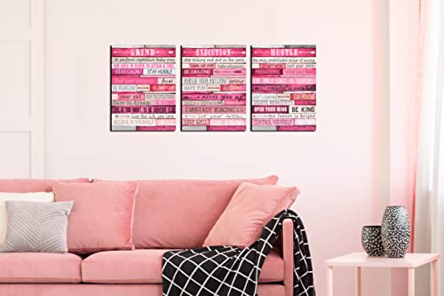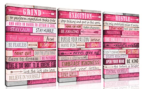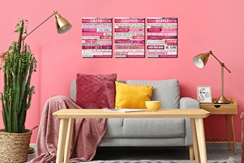 THRLVEART - لوحة فنية جدارية من القماش بلون بينك - ديكور غرفة للفتيات المراهقات - ملصقات تحفيزية جاهزة للتعليق مقاس 16 انش × 12 3 قطع