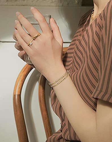 THUNARAZ - ثوناراز سوار خرز مرن قابل للتمدد مصنوع يدويا ومطلي بالذهب عيار 14 قيراط للنساء ذهبي