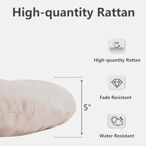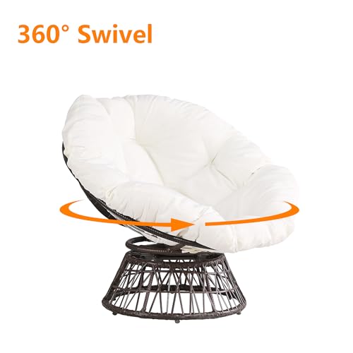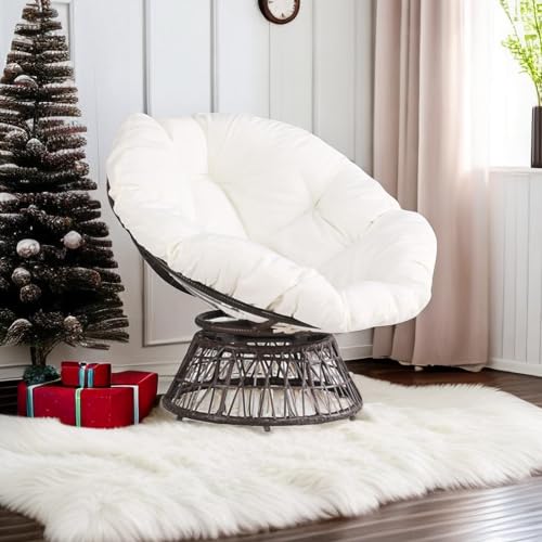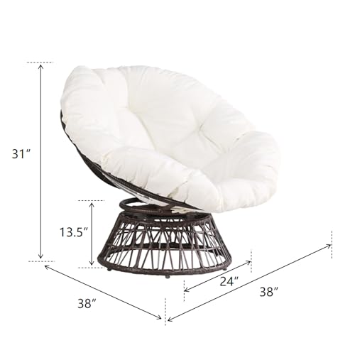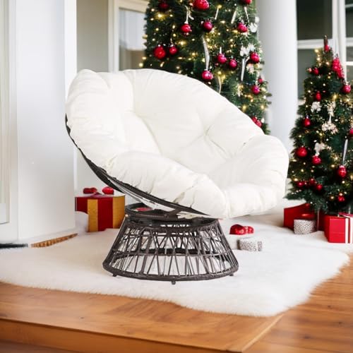 Thy-Hom - كرسي دوار للاماكن الخارجية من ذا هوم، كرسي دوار من الخوص بزاوية 360 درجة، كرسي باباسان مع وسادة مقاومة للماء للاستخدام الداخلي والخارجي (ابيض)