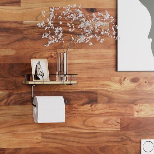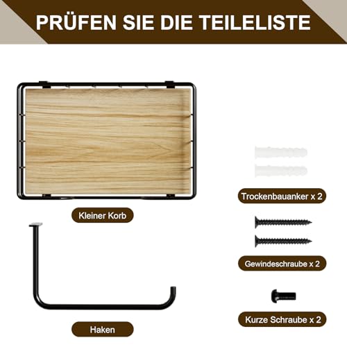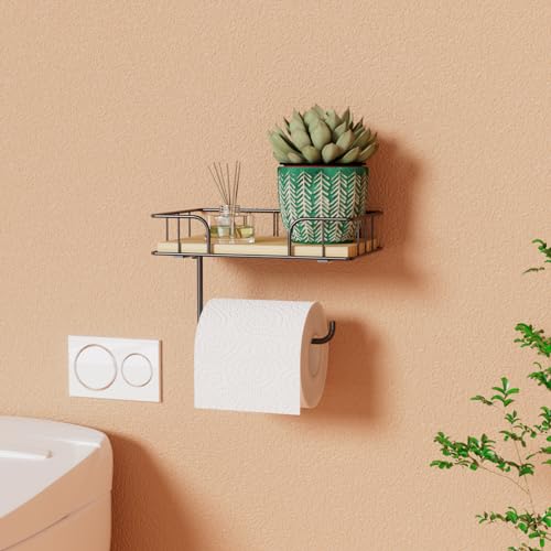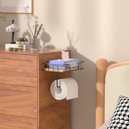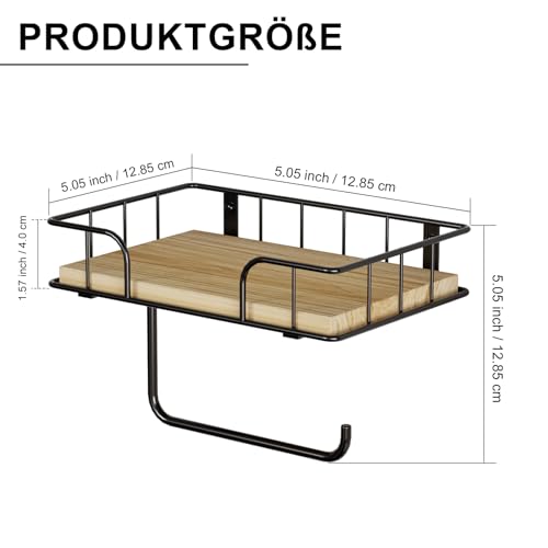 THYGIFTREE - ثاي جيفت تري حامل ورق تواليت خشبي مع رف، حامل ورق التواليت مع صندوق مناديل مبللة، حامل بكرة المرحاض مع ثقب، يثبت على الحائط للحمام (اسود)