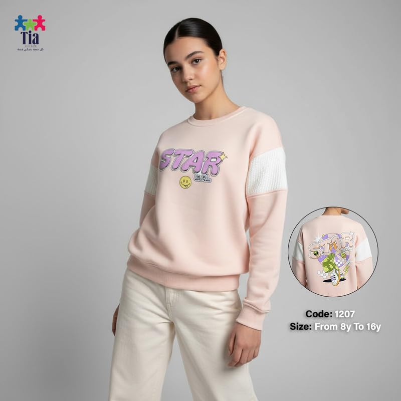 Tia KIDS WEAR - سويت شيرت قطن بتصميم نجمة للبنات من تيا كيدز