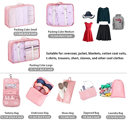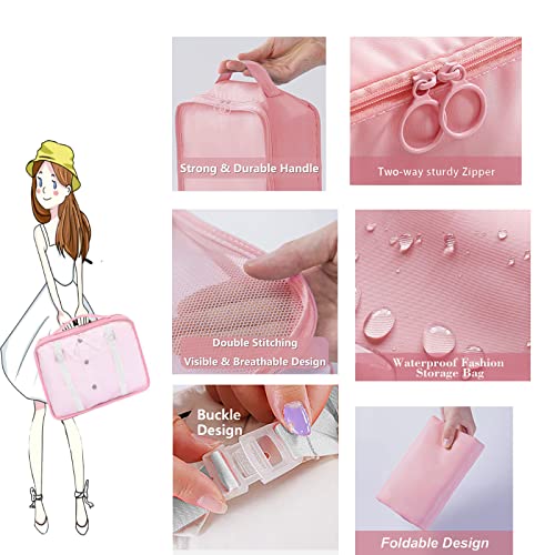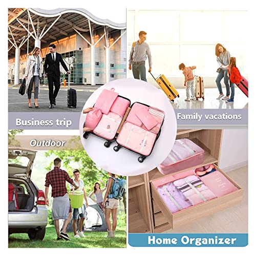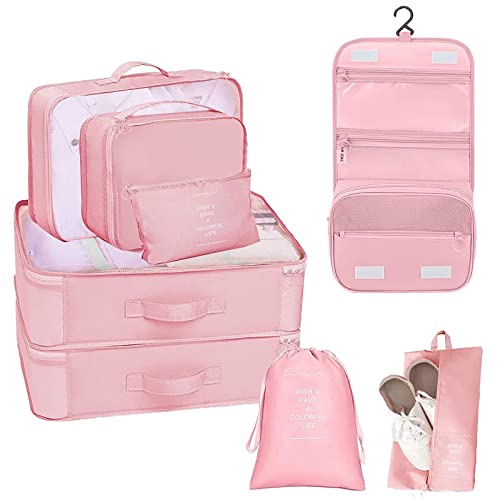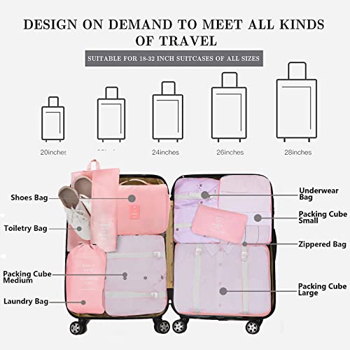 Tianda - مجموعة شنط تخزين وتنظيم السفر مكونة من 8 قطع، شنطة اساسية خفيفة الوزن للسفر مع مستلزمات النظافة للملابس والاحذية ومستحضرات التجميل، للامتعة مقاس 18-32 انش، (بينك)، نايلون، زهري، من تياندا