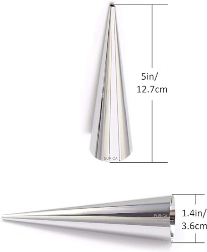 Tianlong - قوالب قمع الكريمة مكونة من 16 قطعة، مقاس 12.7 سم كبيرة الحجم على شكل قمع، انابيب كانولي، قالب ايس كريم من الستانلس ستيل، قالب قمع المعجنات والوافل والمعجنات والكرواسون، فضي