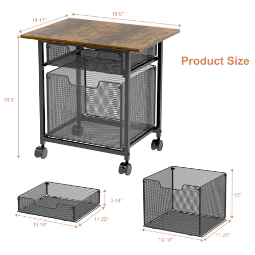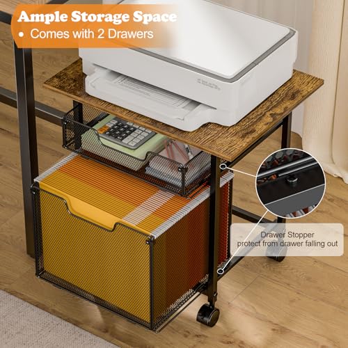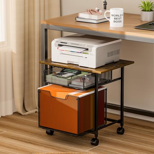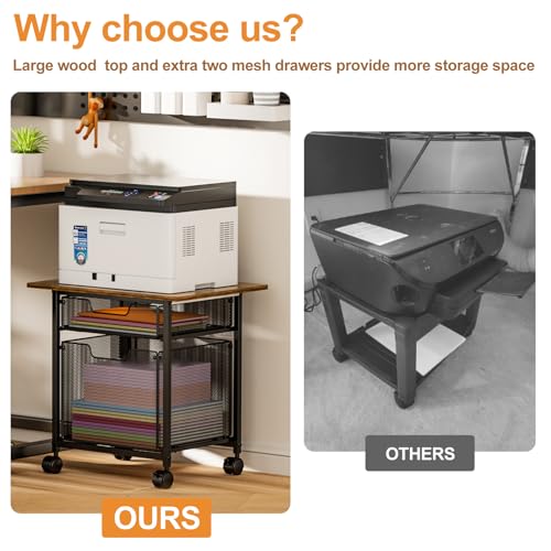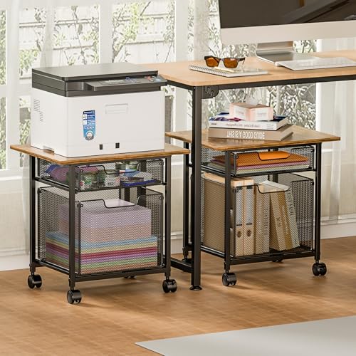 Tiaoheka - عربة حامل طابعة مع درج تخزين من تياوهيكا - بني