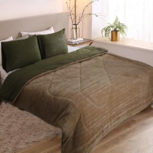 TIBA - لحاف شتوي بوجهين سنوز وجاكار وفرو من طيبة 2.20 × 2.35 متر، أخضر غامق وبيج