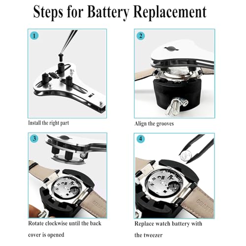 TICFROG - اداة استبدال بطارية الساعة من تيسي فروج، مفتاح ربط كبير بـ3 نقاط لفتحة هيكل ساعة اليد، اداة ازالة الظهر مع 18 لقمة وحامل ساعة وملاقط مضادة للكهرباء الساكنة، دليل تعليمات باللغة الانجليزية