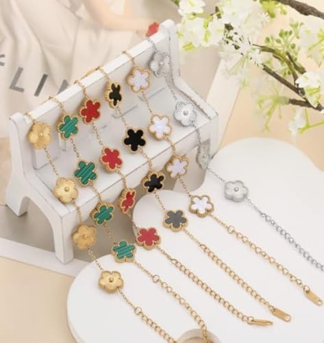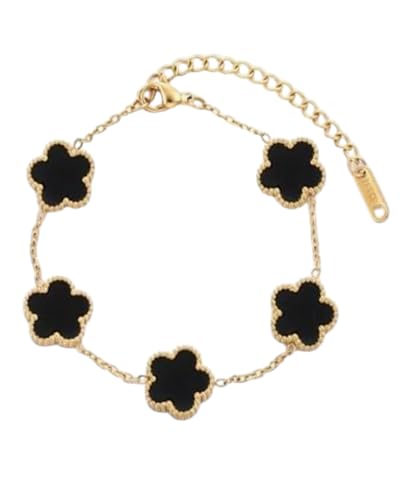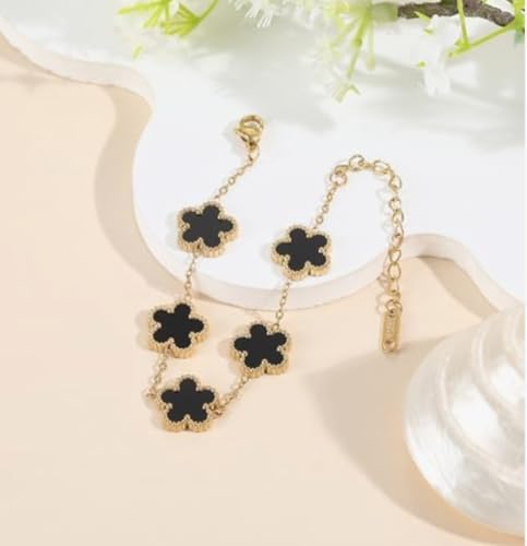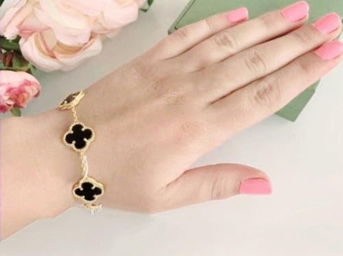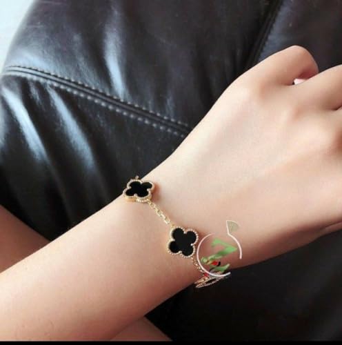 عام - سوار فان كليف باربع اوراق البرسيم للنساء مطلي بالذهب عيار 18 قيراط من الستانلس ستيل الاسود لاكي 4 ورق، سوار مجوهرات هدية للنساء من تيكفرس