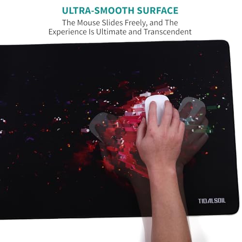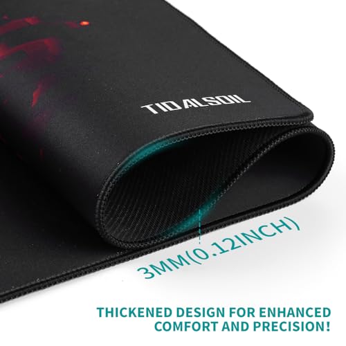TIDALSOIL - قاعدة ماوس كبيرة للألعاب، قاعدة مكتب ممتدة مع جزء خلفي غير قابل للانزلاق بحواف مخيطة وسطح أملس للوحة المفاتيح والماوس والمكتب للألعاب والعمل من تيدالسويل، 90×40 سم