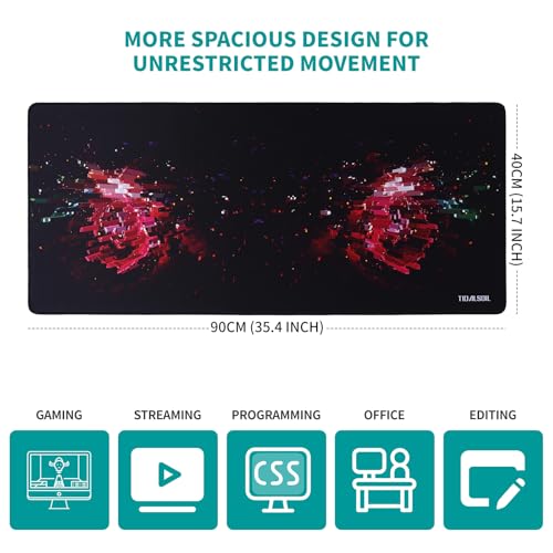 - مقاس كبير جدًا لتغطية كاملة: مقاس 90 × 40 سم، توفر قاعدة الماوس كبيرة الحجم هذه مساحة واسعة للوحة المفاتيح والماوس وغيرها من ضروريات المكتب، مما يجعلها مثالية لإعدادات الألعاب أو المكاتب المكتبية.