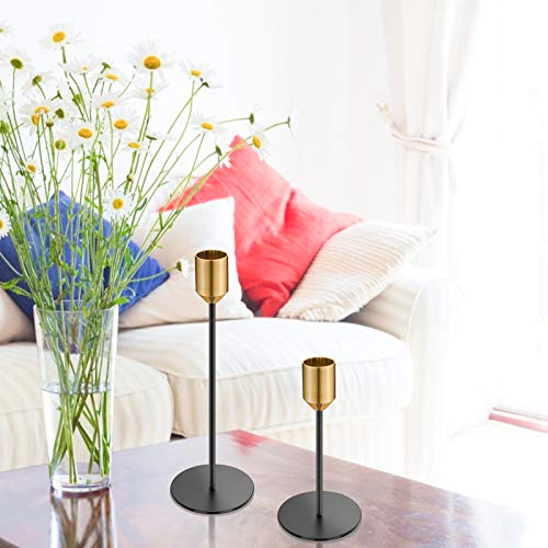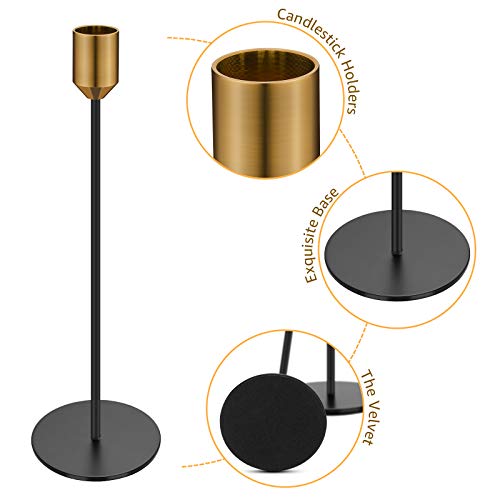 Tidelence - حامل اعواد شمع من النحاس الجولد والاسود وبنمط مزخرف عصري من تيديلينس، بقطعتين