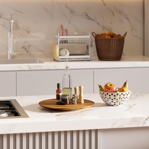 Tidita - منظم طاولة ليزي سوزان من خشب الاكاسيا مقاس 18 انش - قرص دوار خشبي للمطبخ لتخزين الطعام لالواح الجبن والمخزن والثلاجة وسطح الطاولة (خشب اكاسيا، 18 انش)