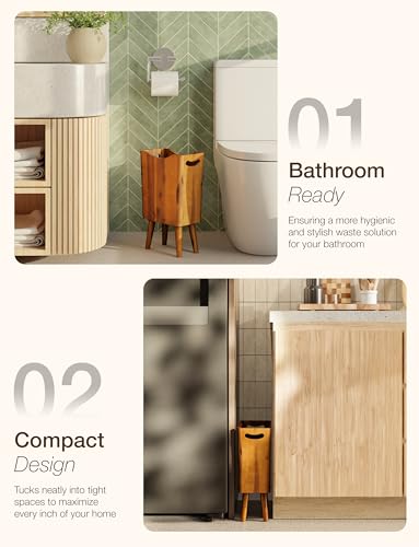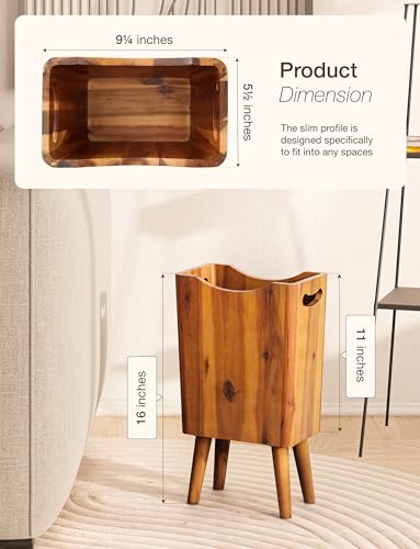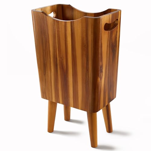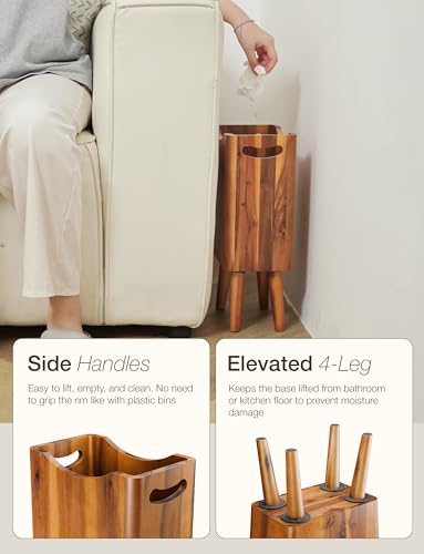 Tidita - سلة مهملات خشبية سعة 2 جالون بـ4 ارجل - سلة مهملات خشبية من خشب الاكاسيا، ملحقات حمام خشبية - سلة مهملات صغيرة - سلة مهملات لغرفة النوم والمكتب - سلة مهملات للحمام المزخرفة، مقابض