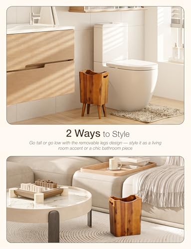 - تصميم 2 في 1: استخدم سلة المهملات المزخرفة هذه مع أو بدون أرجل سهلة الإزالة لتناسب أي مساحة، اذهب طويلًا لتبرز في ديكور حمامك أو منخفضة لوضعها في غرفة المعيشة. استخدمها كملحقات حمام خشبية وسلال نفايات خشبية وعلب قمامة خشبية عصرية على حد سواء. إضافة عملية وأنيقة لأي مجموعة من سلال النفايات