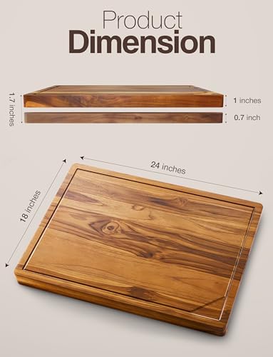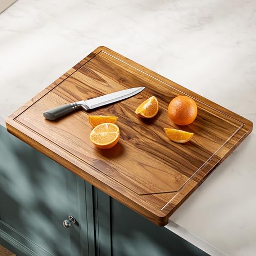 Tidita - لوح تقطيع من خشب الساج مع حافة من تيديتا - ألواح تقطيع خشبية للمطبخ - طبق تقديم، لوح معجنات، لوح تقطيع خشبي مع حافة منضدة ومقابض - اخدود عصير (خشب الساج، طول 61 × عرض 46 سم)