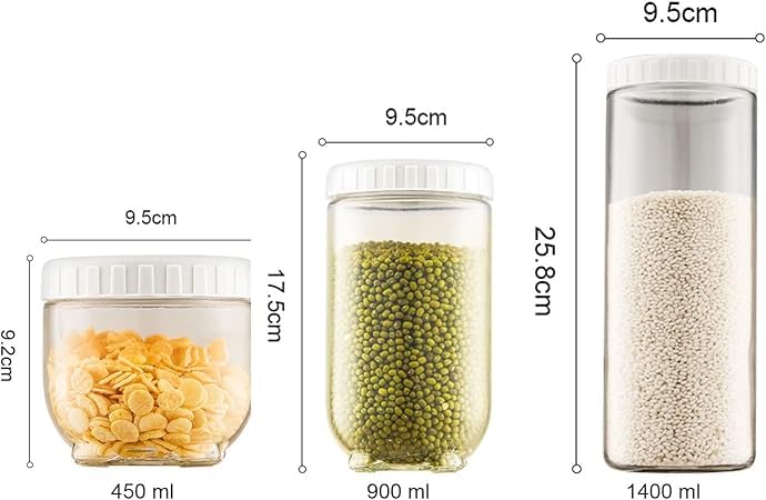 Generic - "توابل مرتبة" - طقم توابل 3 قطع بسعات مختلفة 500 مل - 1000 مل - 1600 مل، جودة عالية وتصميم عملي، بلاستيك متين خالٍ من BPA، تكديس وإحكام، | من عام