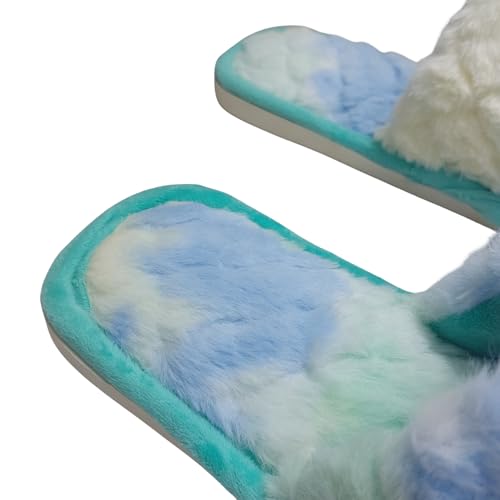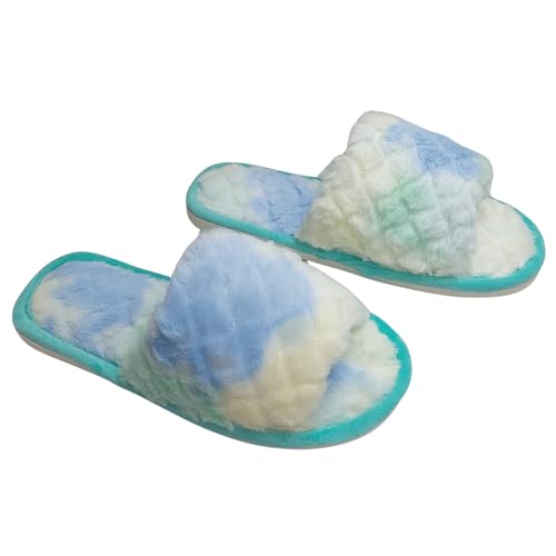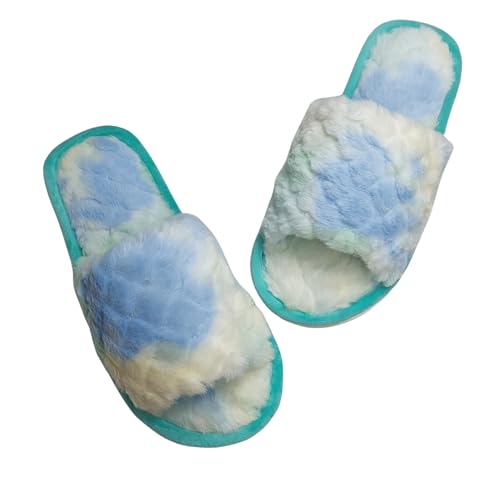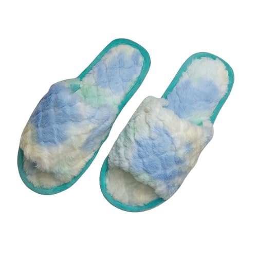 Generic - شبشب فرو حريمي، مصبوغ بالربط، قطيفة ناعمة، شبشب مفتوح عند الأصابع، حذاء شتوي داخلي - أخضر، مقاس 42/43