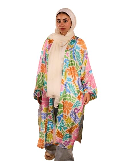 Tie Shop - تاي شوب كيمونو ساتان مطبوع - Pa00SA690300033 - مقاس واحد - برتقالي واخضر وبينك