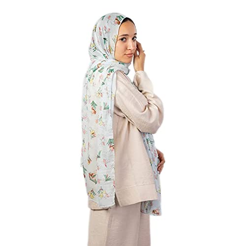 Tie Shop - سكارف كبير مزين بطباعة ومجعد للنساء، من تاي شوب مقاس 75×175، لون ازرق فاتح LB07CH932300332، بيبي بلو، 75*175