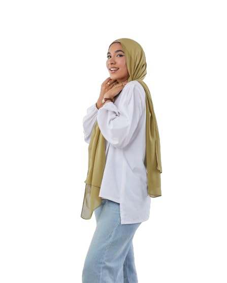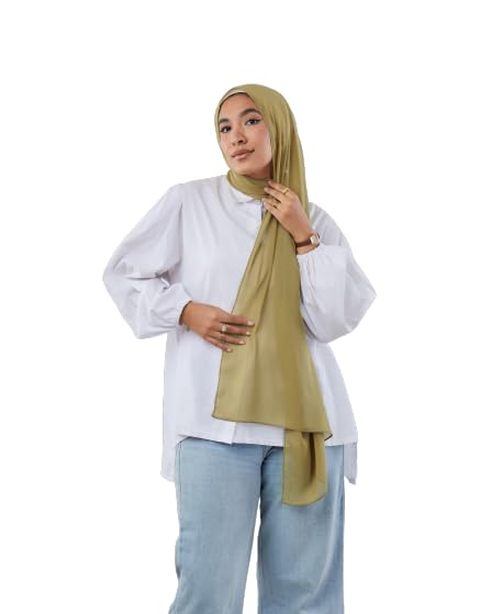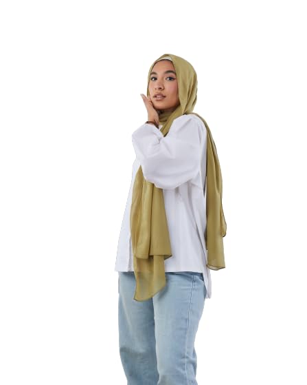 Tie Shop - شال شيفون كريب سادة Ol07CH921300272 للنساء تاي شوب، مقاس: 2 متر×75 سم، زيتوني