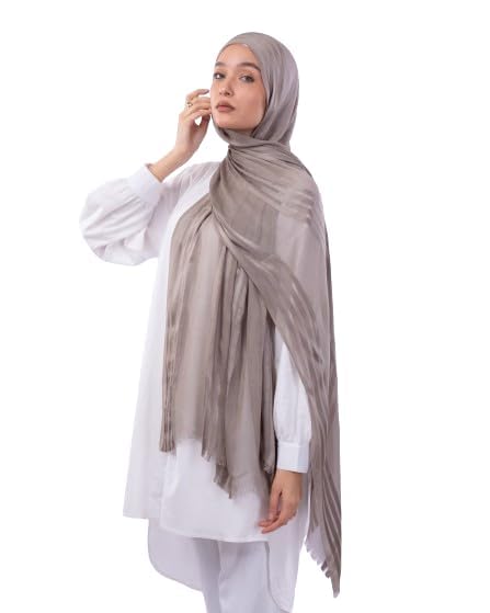 Tie Shop - تاي شوب - وشاح كويتي مخطط من الساتان للنساء - GY29LI350660003 - المقاس: 200 × 75 سم - رمادي