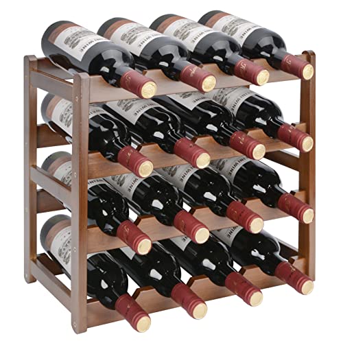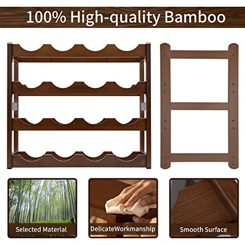 TienYow - رف مشروبات من الخيزران من تينيو، 4 طبقات من 16 زجاجة قائمة بذاتها، رف تخزين منظم يوضع على سطح الطاولة، حامل مشروبات للمطبخ وغرفة الطعام وغرفة المعيشة والبار والمخزن وقبو النبيذ والقبو