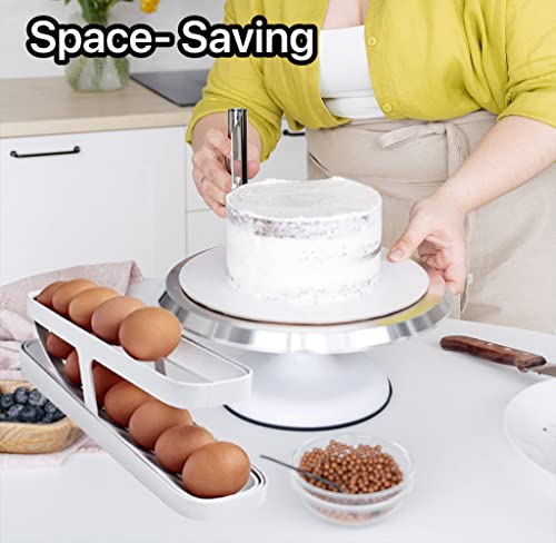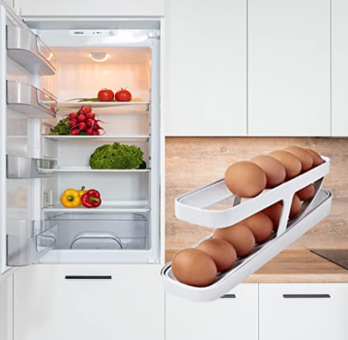 Generic - موزع بيض من طبقتين، بكرة بيض أوتوماتيكية للثلاجة، حاوية تخزين البيض للمطبخ (قطعتين)