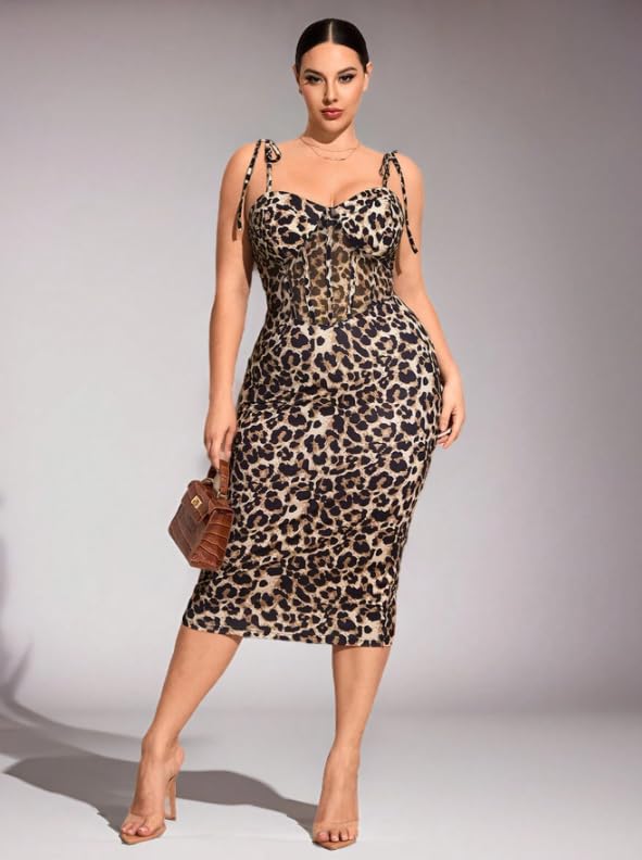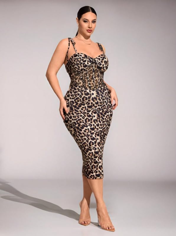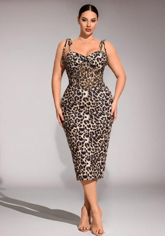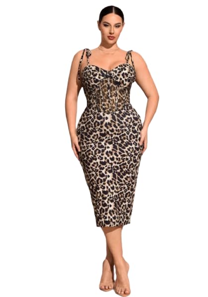 Generic - فستان حريمي تايجر بيج سايز خامة زبدة مستورد، فستان ضيق ميدي بحمالات، تلبيس أنيق – Women Leopard Print Midi Dress Plus Size, Soft Butter Fabric