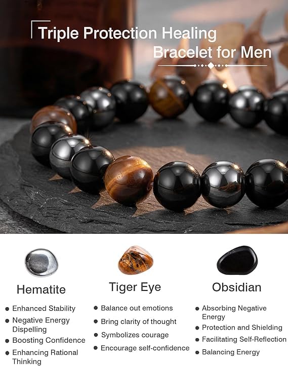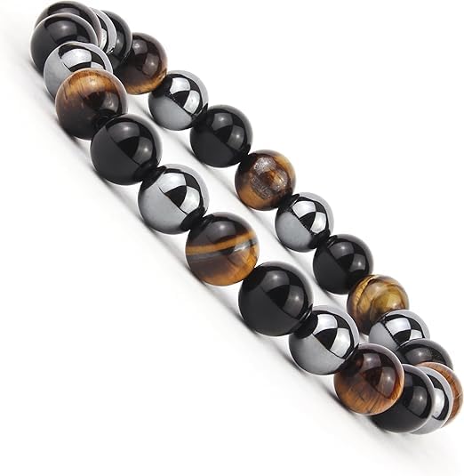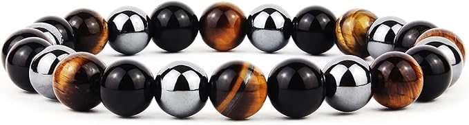 Generic - سوار خرز من حجر عين النمر والعقيق الأسود ، محيط 18 سم للكبار من الجنسين