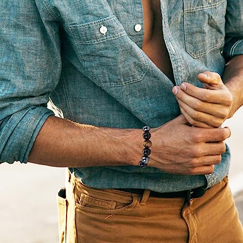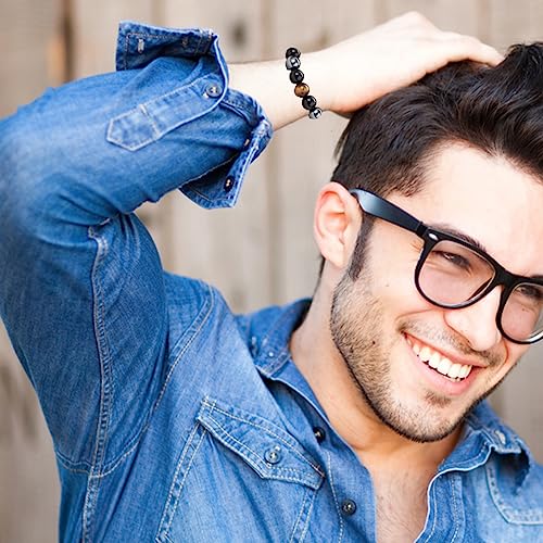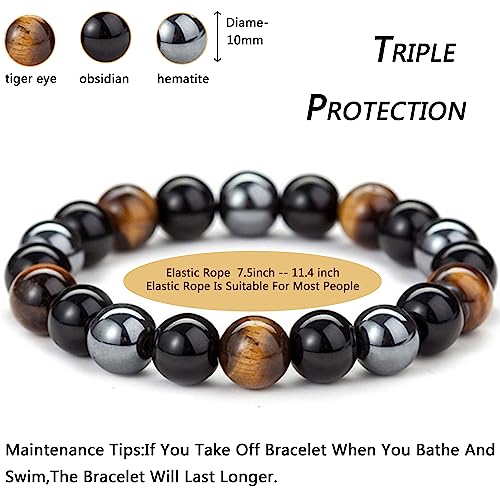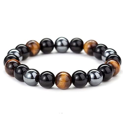 generic - سوار عين النمر 10 ملم للاسترخاء والقلق، سوار حماية ثلاثية من الاحجار الكريمة الكريستالية الروحية، اساور خرز للنساء والرجال تجلب الحظ والازدهار، عين النمر