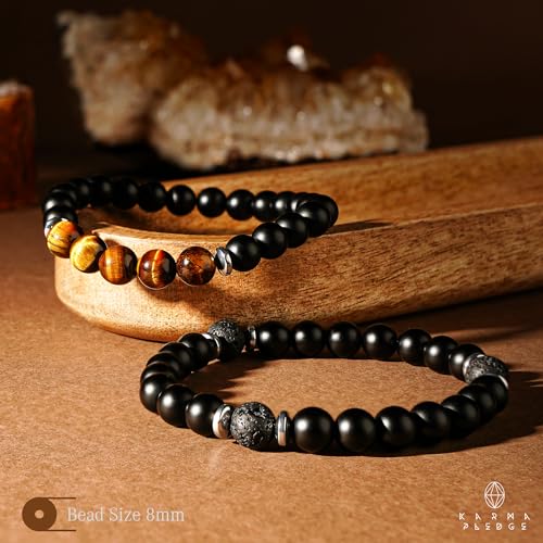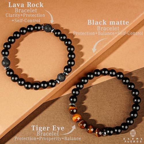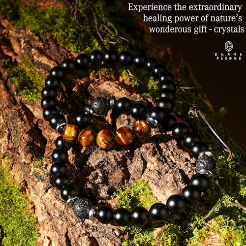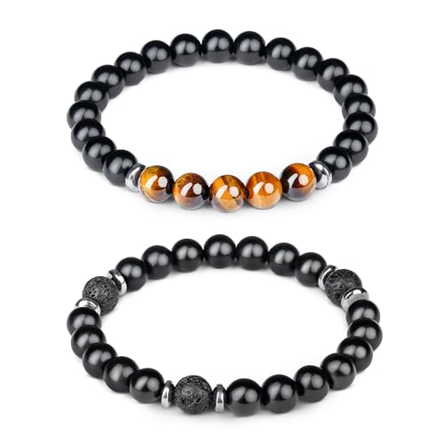 generic - سوار كريستال عين النمر مصنوع يدويا 8 ملم خرز اسود مات شاكرا كريستال علاجي مجموعة من 2، هدايا للنساء والرجال، يجلب الايجابية والنجاح والحظ السعيد، هدية عيد ميلاد للاب