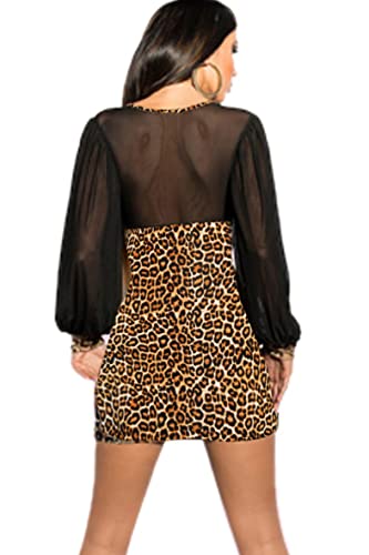 Generic - فستان لانجيري باكمام واسعة، بني تايجر ، للنساء
