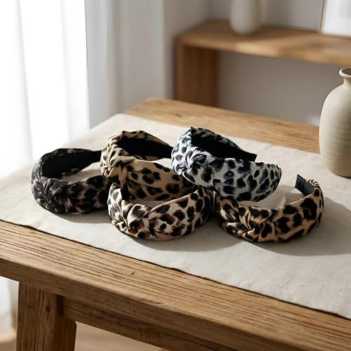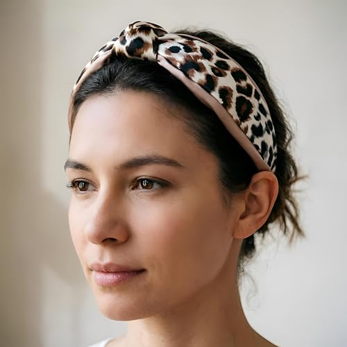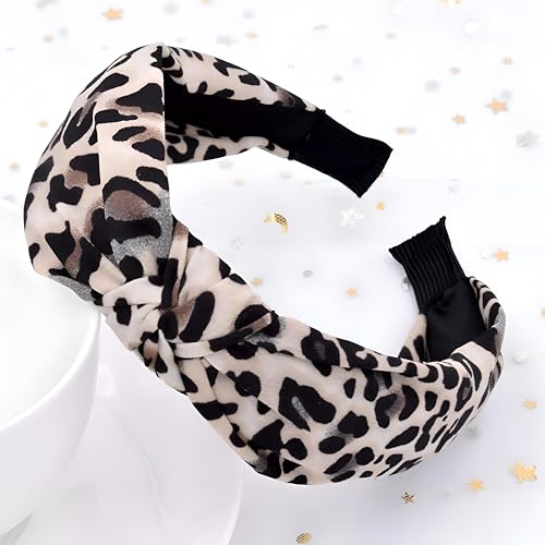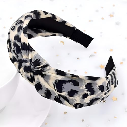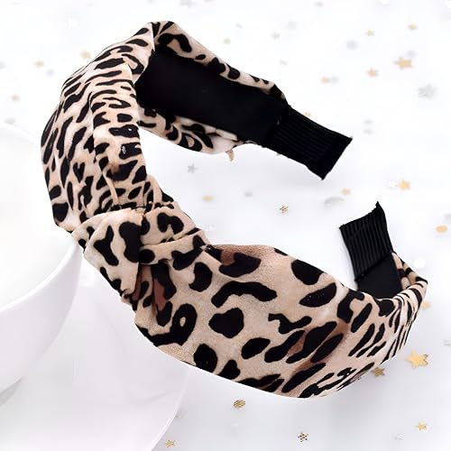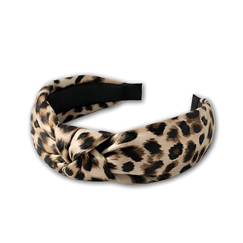 Generic - أطواق شعر عصرية عريضة مزينة بنقشة جلد الفهد متقاطعة ملفوفة بقطعة قماش لاكسسوارات تصفيف الشعر الأنيقة للغاية للاستخدام اليومي للبنات والنساء (قطعة واحدة)