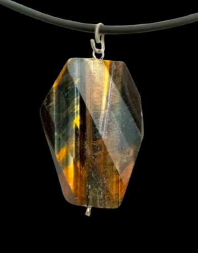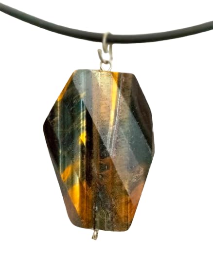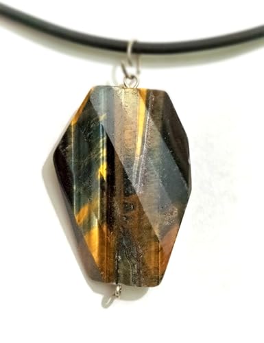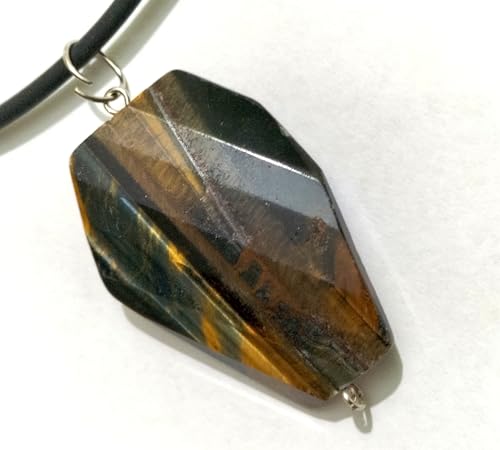 Generic - قلادة بدلاية من حجر عين النمر الطبيعي، كريستال كبير الاوجه، بني وذهبي