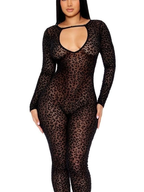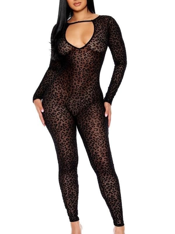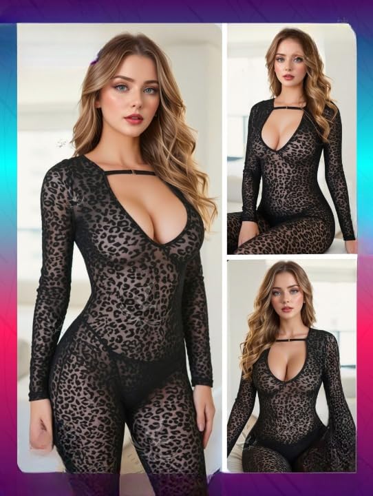 Generic - سلوبيت لانجيري حريمي دانتيل شفاف نقشة تايجر – ملابس نوم قطعة واحدة ضيقة مرنة بفتحة صدر وأكمام طويلة – بودي سووت نسائي مثير ناعم عالي الجودة – مقاس موحد