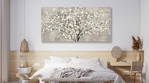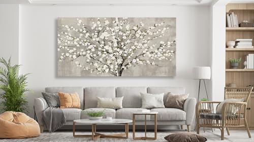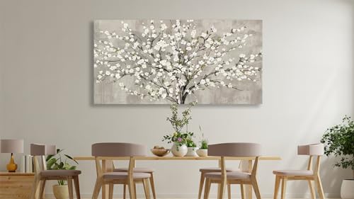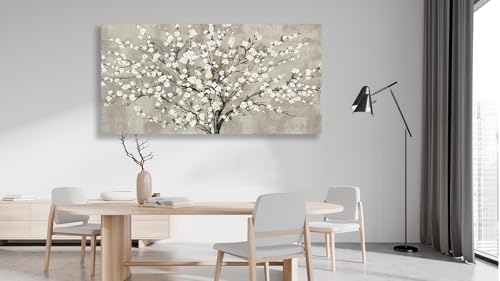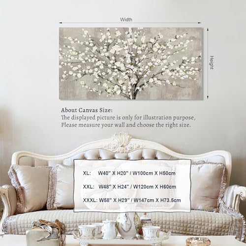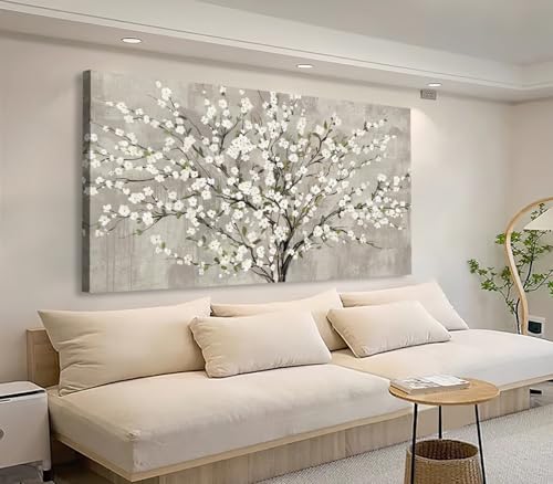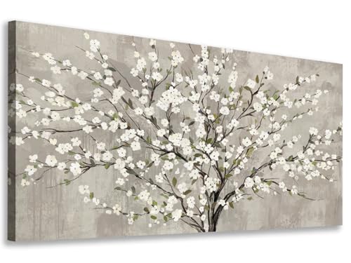 tigeridge - لوحة جدارية من تايجريدج، طباعة فنية لغرفة المعيشة بتصميم شجرة زهور بيضاء وأوراق خضراء، مقاس 101.6 × 50.8 سم، قطعة واحدة